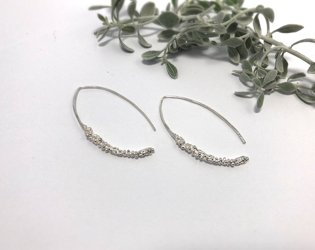 ミモザの花をイメージしたシンプルなフック型ピアスです。 大人っぽくシックな印象です。シンプルなデザインですので、お洋服を選ばずつけていただけると思います。